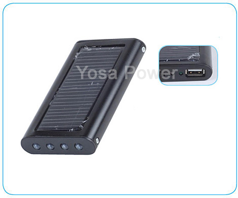 Solar Charge for mobile phone,MP3,MP4,digital camera,etc.with 4 LEDs which can be used as solar flashlight Charge time for phone:2-3 hours Charged by sun, by adaptor and computer Solar charge time:8-16 hours Adaptor or computer charge time:3-5 hours 95x53x14mm